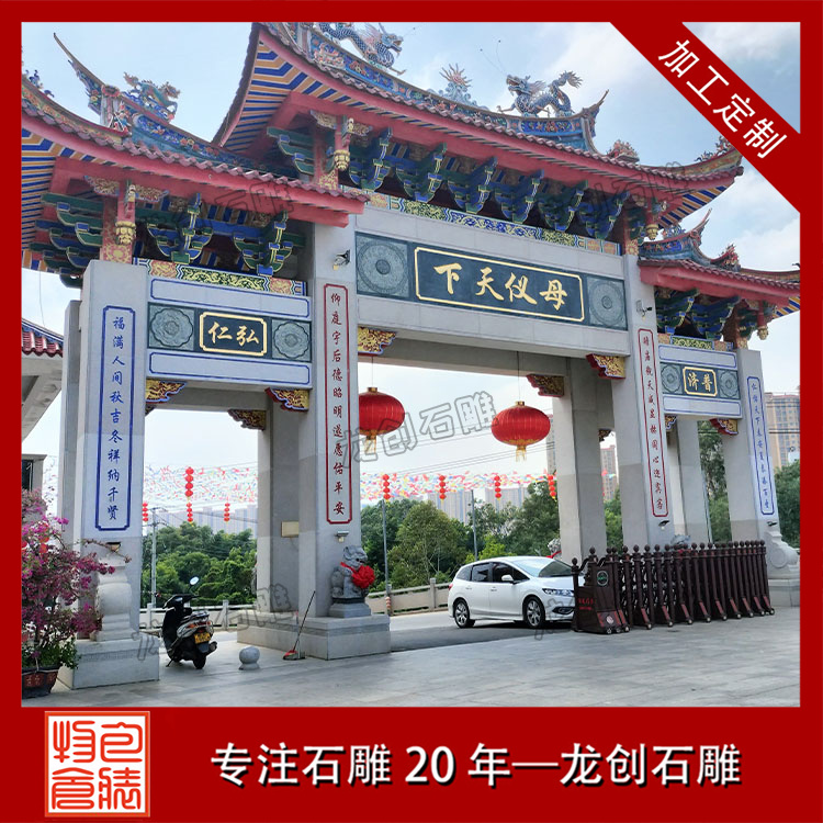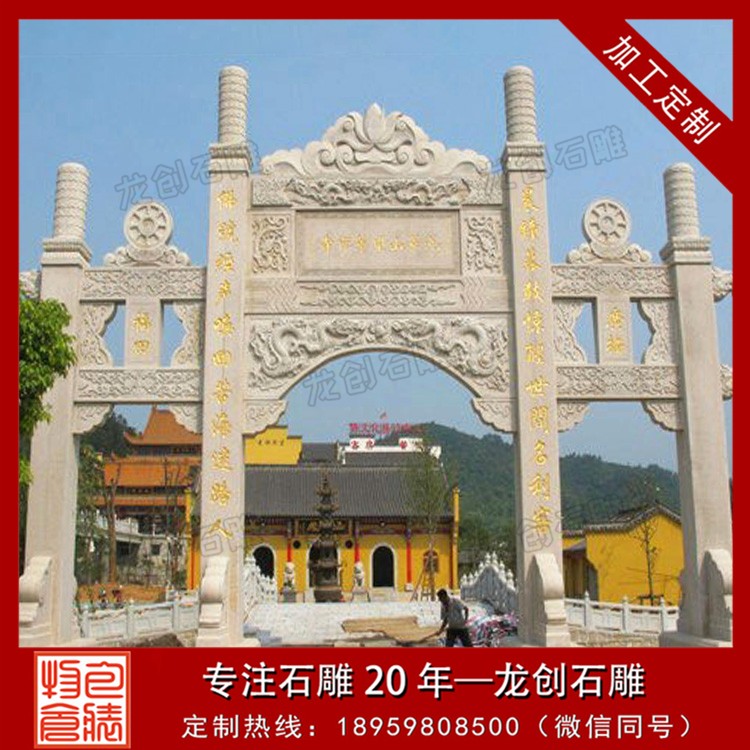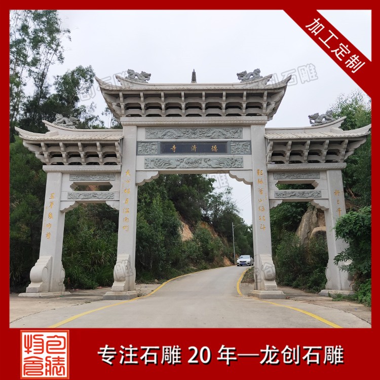 寺廟文化在中國有著悠久的歷史,寺廟不僅是宗教信仰的象征,更是人們精神生活的重要寄托。而在這個文化背景下,寺廟的建筑風格、裝飾藝術同樣具有深厚的內涵。位于惠安的惠安縣龍創石雕工藝有限公司,憑借其精湛的石雕技藝,在寺廟三門五樓石雕牌坊的制作上,結合了傳統工藝與現代設計的工藝。