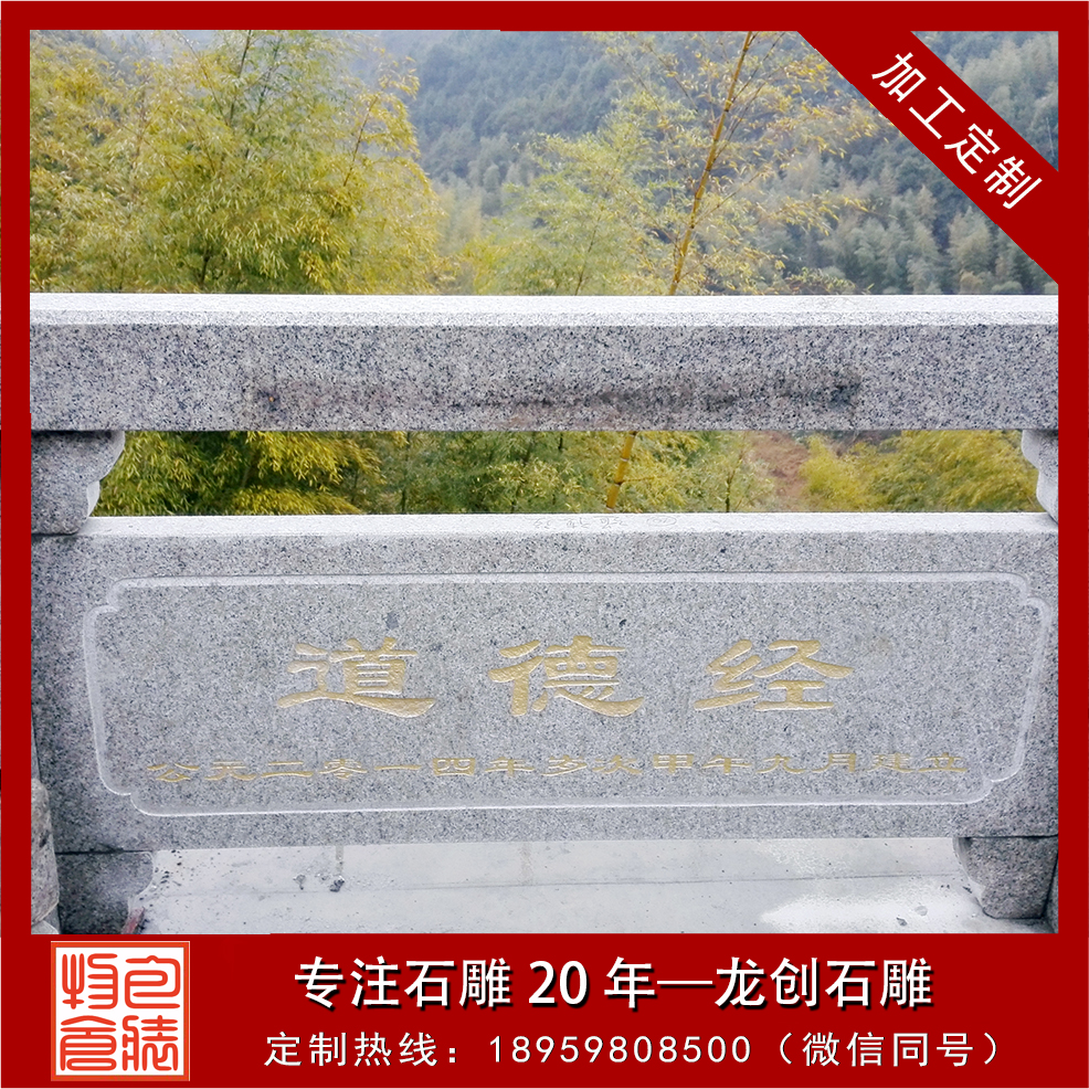 為了更好的與二殿祭拜“馬氏三仙”的習俗吻合,龍創石雕公司特別為其定制了道德經的石雕欄桿,將道德經經文刻于欄板上。讓前來游玩的游客除了能夠賞到美景,也能夠更好的了解到當地習俗。