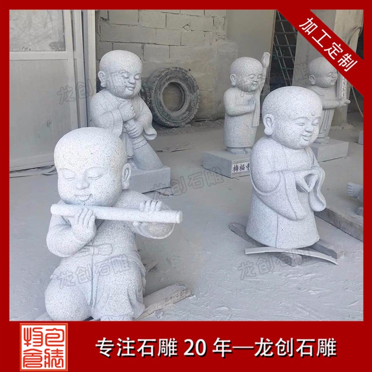 花崗巖石雕禪意小和尚圖片大全主要分為掃地小和尚,晨練小和尚,吹笛小和尚,打盹小和尚,偷懶小和尚等。正在打坐的石雕小和尚,眼睛微閉,正打著盹,慵懶可愛,充滿童趣。在景區,文化廣場,校園等地擺放,給人們帶來歡樂,同時又不失為一道風景線。