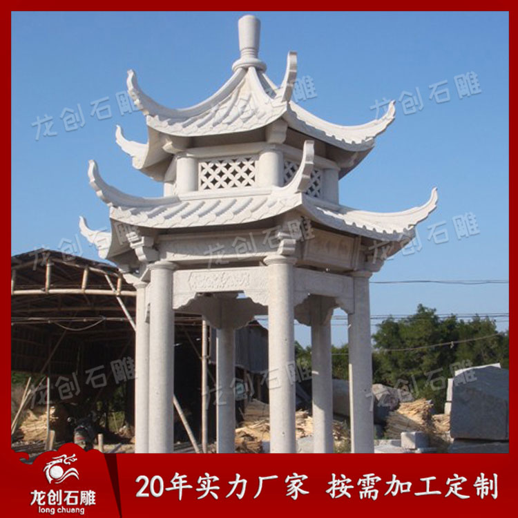 石涼亭也叫石亭子,是提供人們在園林或者是景區(qū)中觀賞風景與休憩的場所,加工石涼亭在選擇石材時,有的石材顏色比較單一可以通過雕刻的方式來彌補顏色帶來的不足,或者是通過雕刻的圖案來代表人們美好的一種祝愿。