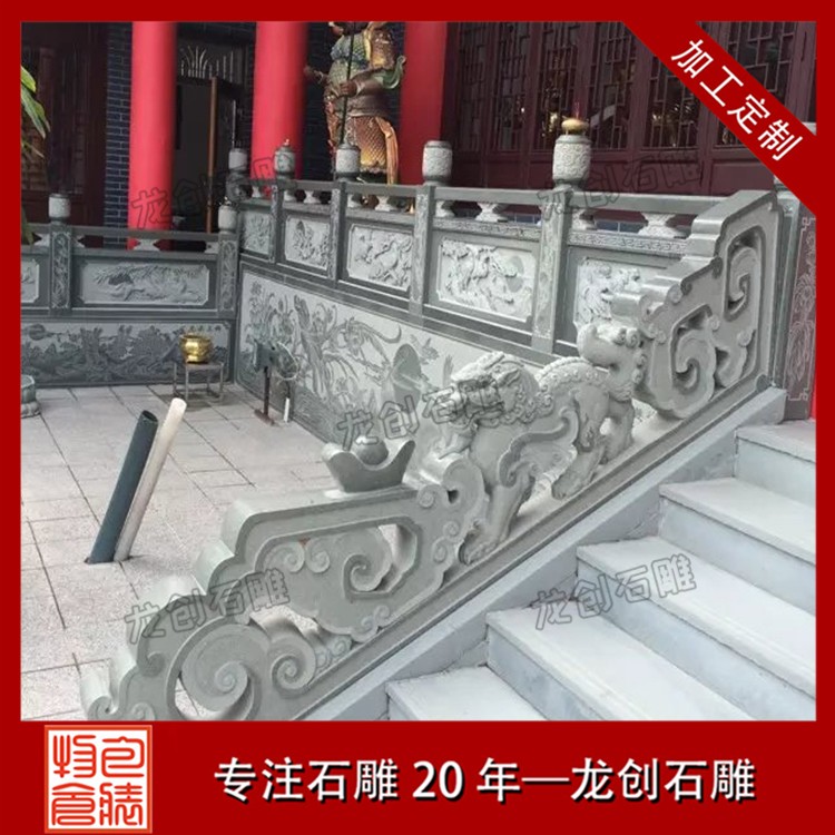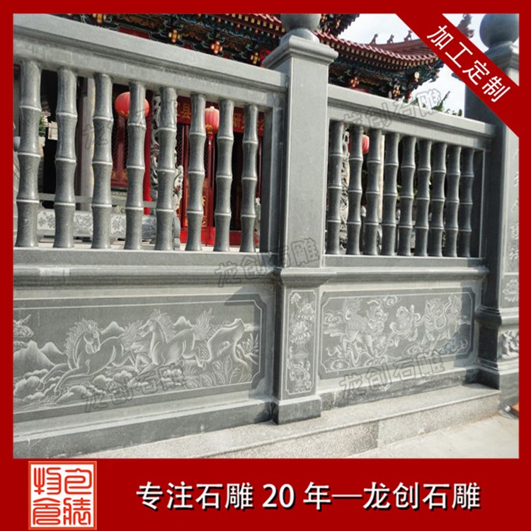 4.材質多樣:石雕護欄的材質多樣,包括青石、花崗巖、漢白玉等,不同的材質具有不同的紋理和色彩,能夠滿足不同環境和需求下的使用要求。