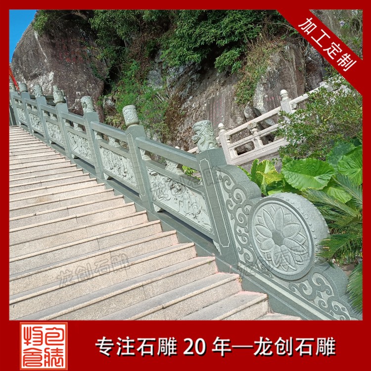 3.穩定牢固:石雕護欄采用天然石材制作,質地堅硬,結構穩定,能夠承受較大的壓力和沖擊,確保使用過程中的安全性和穩定性。