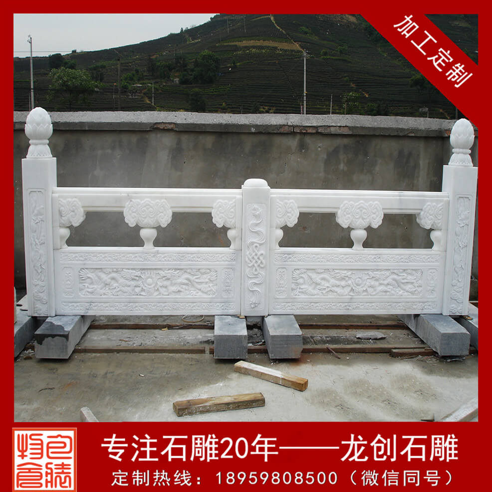石雕欄桿給人以安全感,一起給人以美的享受。一座大橋,安上與橋體結構相適應、與周圍環境相協調的欄桿,就猶如畫蛇添足,使橋梁變得瑰麗多姿。也難怪歷代修建大師是那么重視石制欄桿的精雕細琢,例如趙州石橋上的石雕欄桿,只雕龍欄板就有游龍、戲珠、奔龍、絞龍、交龍等數種,望柱也形色不一,有蟠龍竹節式、竹節寶珠式等。這些斑紋雕飾多取材于廣為流傳的神話傳說,用以體現勞動聽民的才智和力氣,或象征善良、夸姣、打敗兇惡等內容,因而深受人們喜歡。歷代文人韻士也借石雕欄桿雕塑以傳情,留下了許多膾炙人口的詩句:宋代詞人辛棄疾有“眾里尋他千百度,驀回憶,那人卻在燈火柵門處”的名句,民族英雄岳飛也有“勃然大怒憑欄處,瀟瀟雨歇”的壯語,清代大作家曹雪芹則常常將石雕欄桿與士女相題:“綠蓑江上秋聞笛,紅袖樓頭夜倚欄”、“望故鄉兮何處?倚欄桿兮涕沾襟”。因而,造型優美的石雕欄桿,又能啟人心智,抒人胸懷,牽動聽的情思,然后它又是改造環境、培養人們具有杰出情趣的修建物。