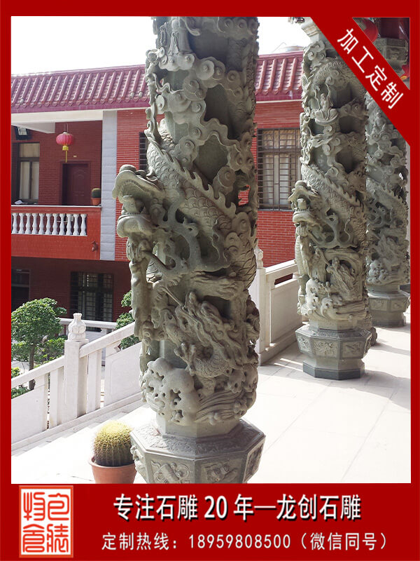 石雕龍柱是惠安石雕中具有代表性的作品之一,也是惠安石雕工藝之大成的集合。人們關(guān)于龍柱的感情是非常豐富的,有忠誠,有漠然,有喜愛,有驚奇等等,但是不管哪一種情緒,哪一種感情,都是人們和石雕盤龍柱雕琢間最實在的情誼。