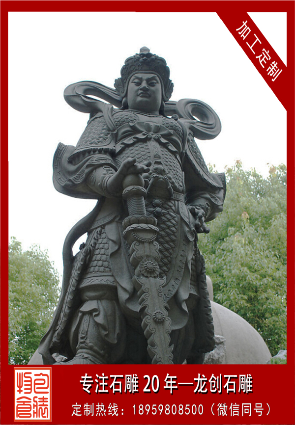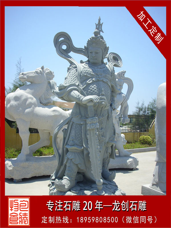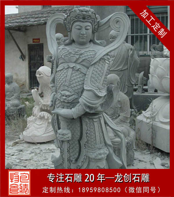 韋陀菩薩,又稱韋陀天,梵名音譯為私建陀提婆,意為陰天。韋陀菩薩石雕是護持正法的一位大菩薩。