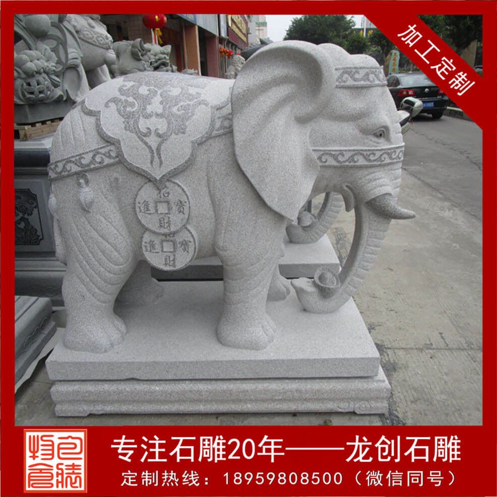 龍創石雕雕琢石雕大象最常用的花崗巖石材在福建在存儲量非常豐厚,龍創石雕可以因地制宜,節約了許多的石材運輸成本,所以給顧客的價格也相對愈加合理化。這也是許多客戶都喜歡到福建惠安龍創石雕定制石雕產品的原因,物美價廉,且這里的石雕大象生產廠家都有激烈的責任心。