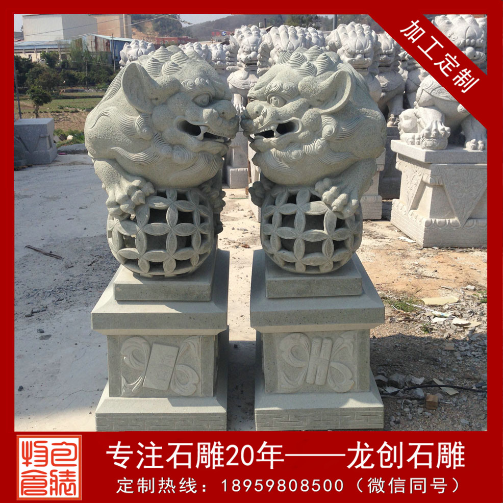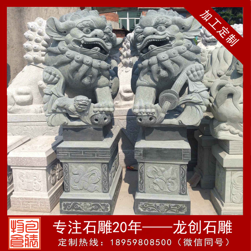 石獅子的造型一般尊嚴(yán)而又大氣,是皇jia守衛(wèi)門戶確保皇宮安寧的瑞獸,因?yàn)楠{子是獸中zhi王,它體態(tài)壯碩雄健、威錳無(wú)比、氣勢(shì)非常。統(tǒng)治者認(rèn)為獅子不但可以避邪,還可帶來(lái)祥瑞之氣。石雕北京獅為雌雄一對(duì),獅頭飾鬃髦,頸懸響鈴,肌肉發(fā)達(dá),氣勢(shì)雄偉。雌獅前左腳下有一幼獅仰臥作嬉戲狀,雄獅前右腳撫踩一繡球。底座有繁縟精致的卷葉紋。石雕北京獅瑞獸一種,百獸zhi王,勇不可擋,威震四方,不但可以避邪,且可帶來(lái)祥瑞之氣,能解除多種形煞,亦加強(qiáng)官威或屋主之陽(yáng)氣,如果窗口見到不利之沖克,如沖煞、天斬煞等,可放一對(duì)石獅面向口可化煞,且有生權(quán)之意,適合官職人員擺放,古時(shí)衙門前就是擺放獅子鎮(zhèn)守。