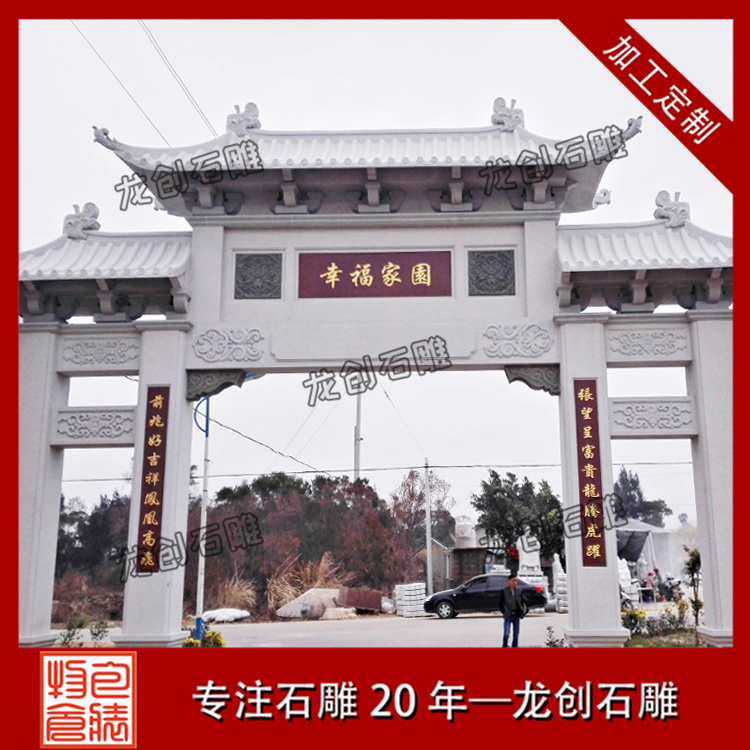 村頭石牌樓制作材質(zhì)有青石、花崗巖、大理石等,樣式有單門、三門、五門,三樓、五樓、七樓等,雕刻的圖案也是多種多樣,因此村頭石牌樓價(jià)格沒(méi)有一定的,預(yù)算多可選擇的樣式也就多,大理石牌樓價(jià)格,請(qǐng)致電我司咨詢,我們會(huì)給您一個(gè)專業(yè)的報(bào)價(jià)。