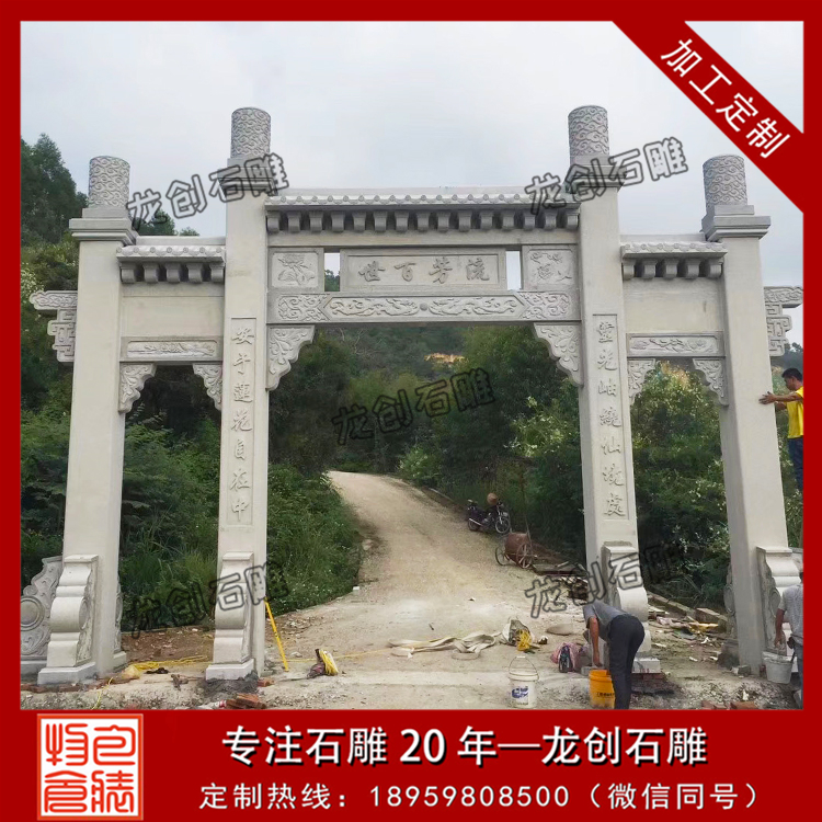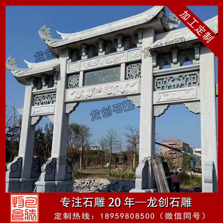 石牌樓上面雕刻有各種吉祥寓意的浮雕圖案,如獅子、龍鳳、麒麟、蝙蝠、梅蘭竹菊、荷花、牡丹等寓意吉祥的浮雕圖案。石牌樓多少錢?石牌樓價格主要受到材料成本的影響,如果材料成本可控,那么石牌樓價格不會太高。比如做一個總寬12米的牌樓,材質是青石的,做出來的石牌樓價格在15萬左右,而這樣的價格一般是在簡單工藝的基礎上可以做出來。如果我們想要更高的工藝要求,以及想要一些款式比較大氣的,那么這其中的價格可能會差5-8萬的差別。